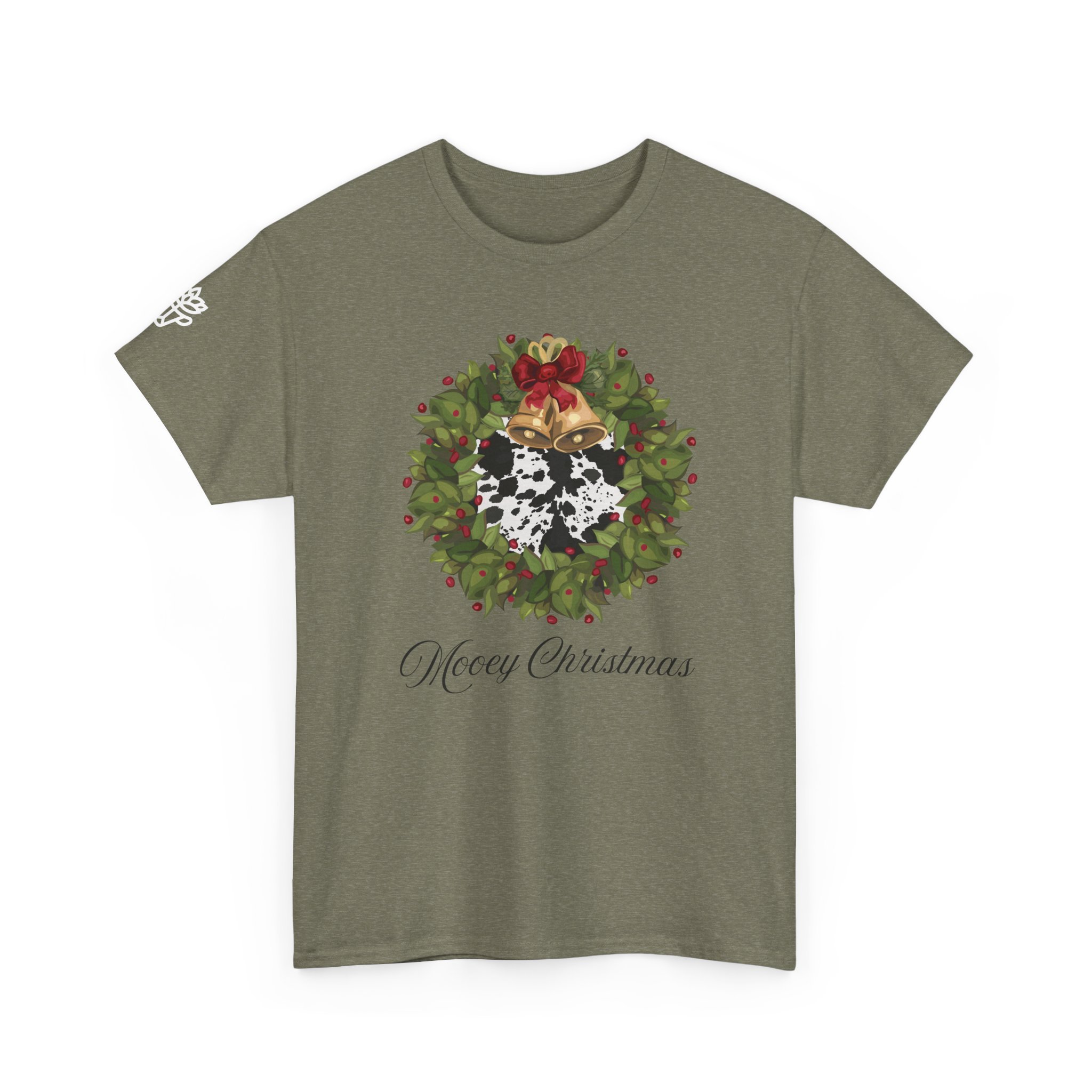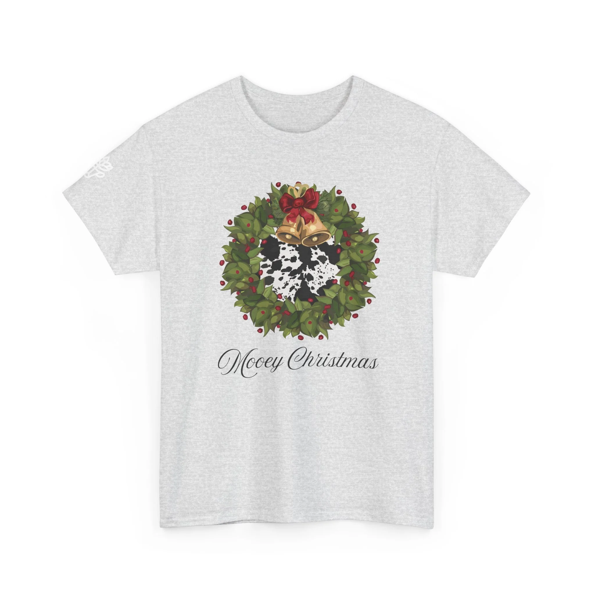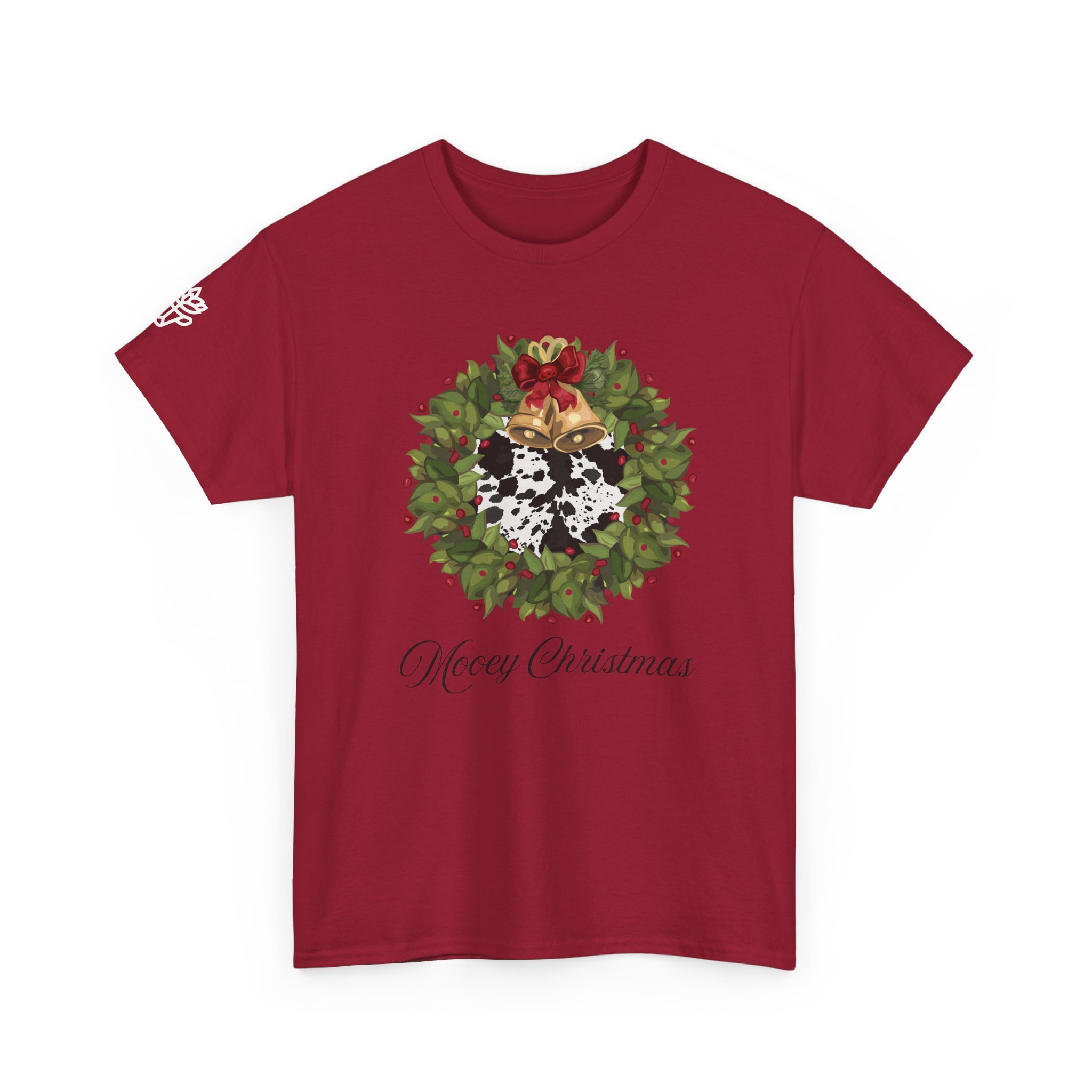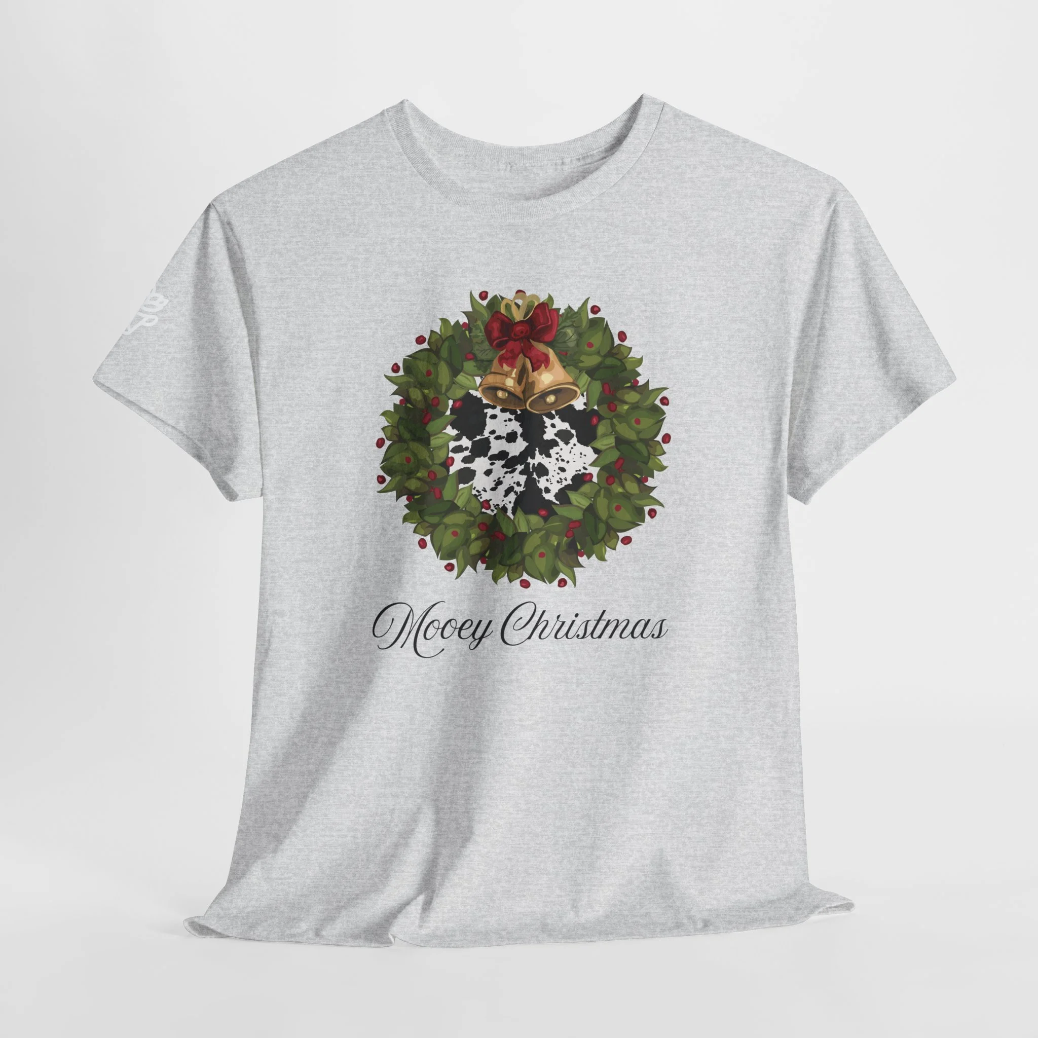 Christmas Cow Wreath T-Shirt — "Mooey Christmas" Holiday Tee