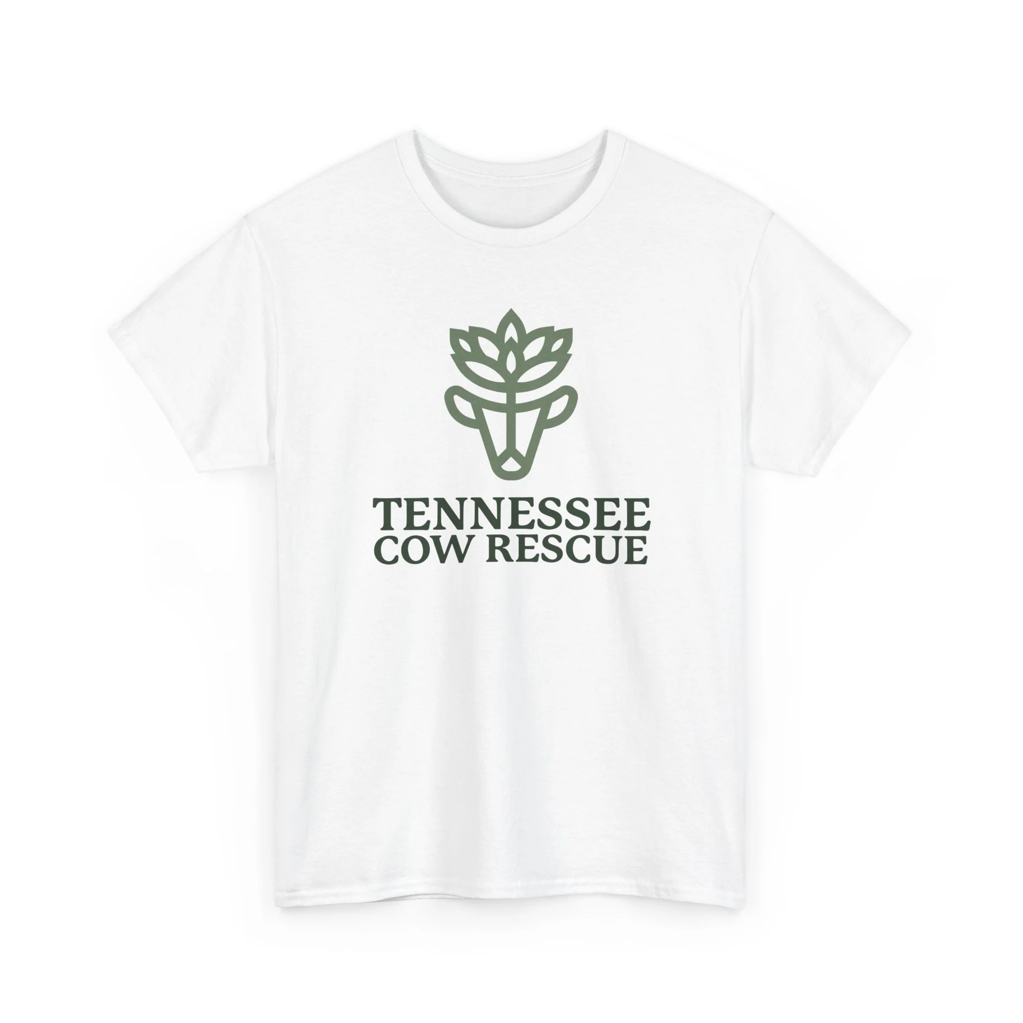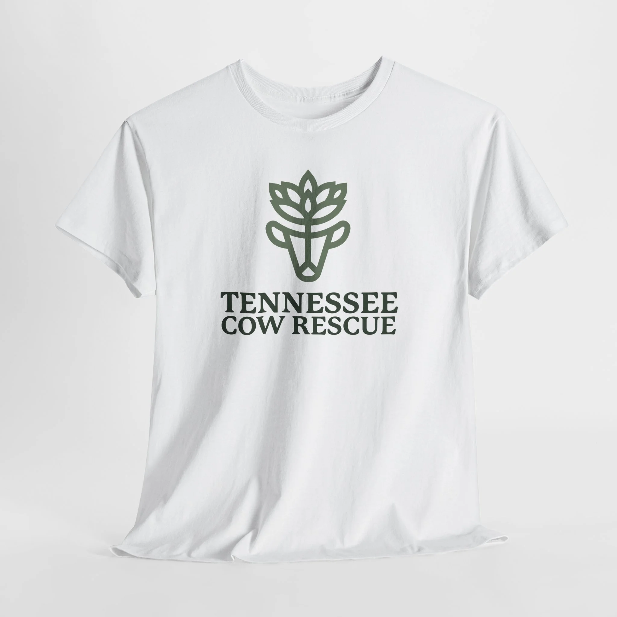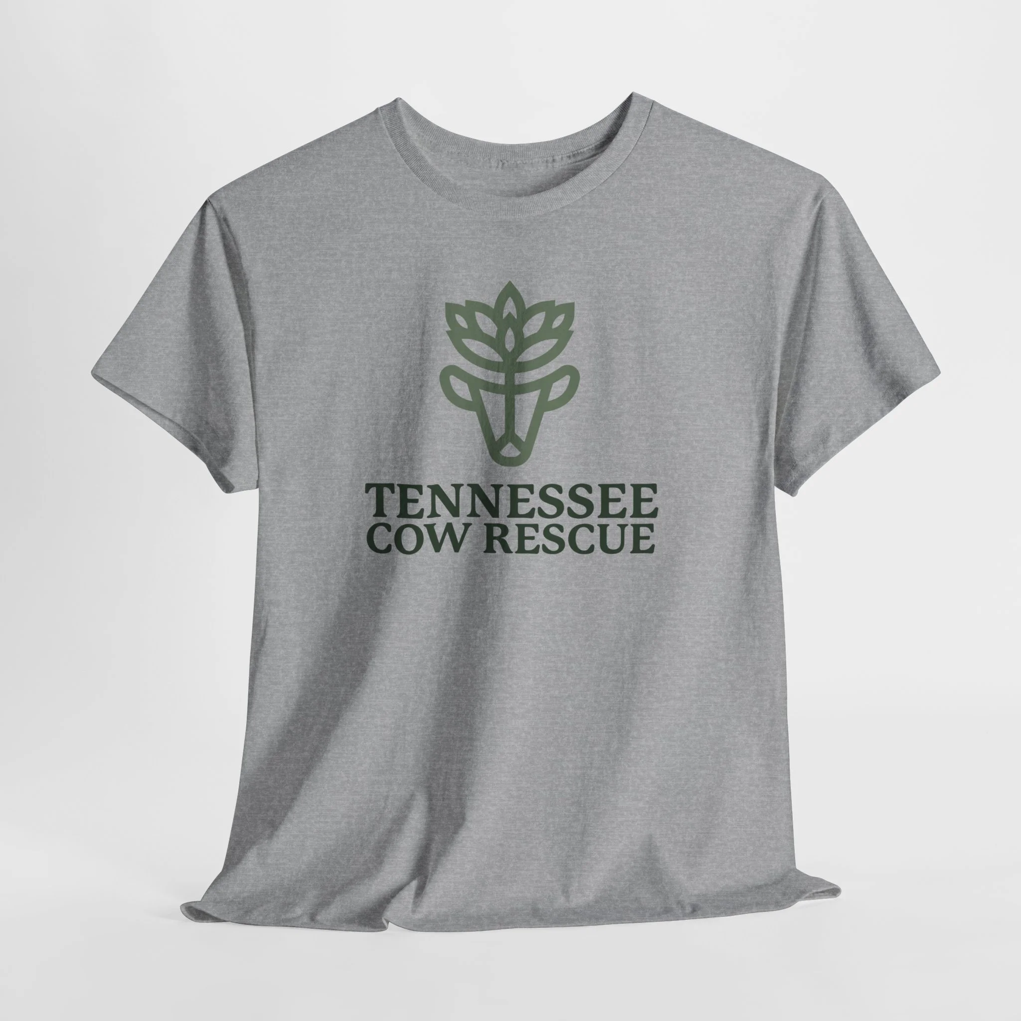 This soft, breathable tee carries our green logo above the words “TENNESSEE COW RESCUE”.