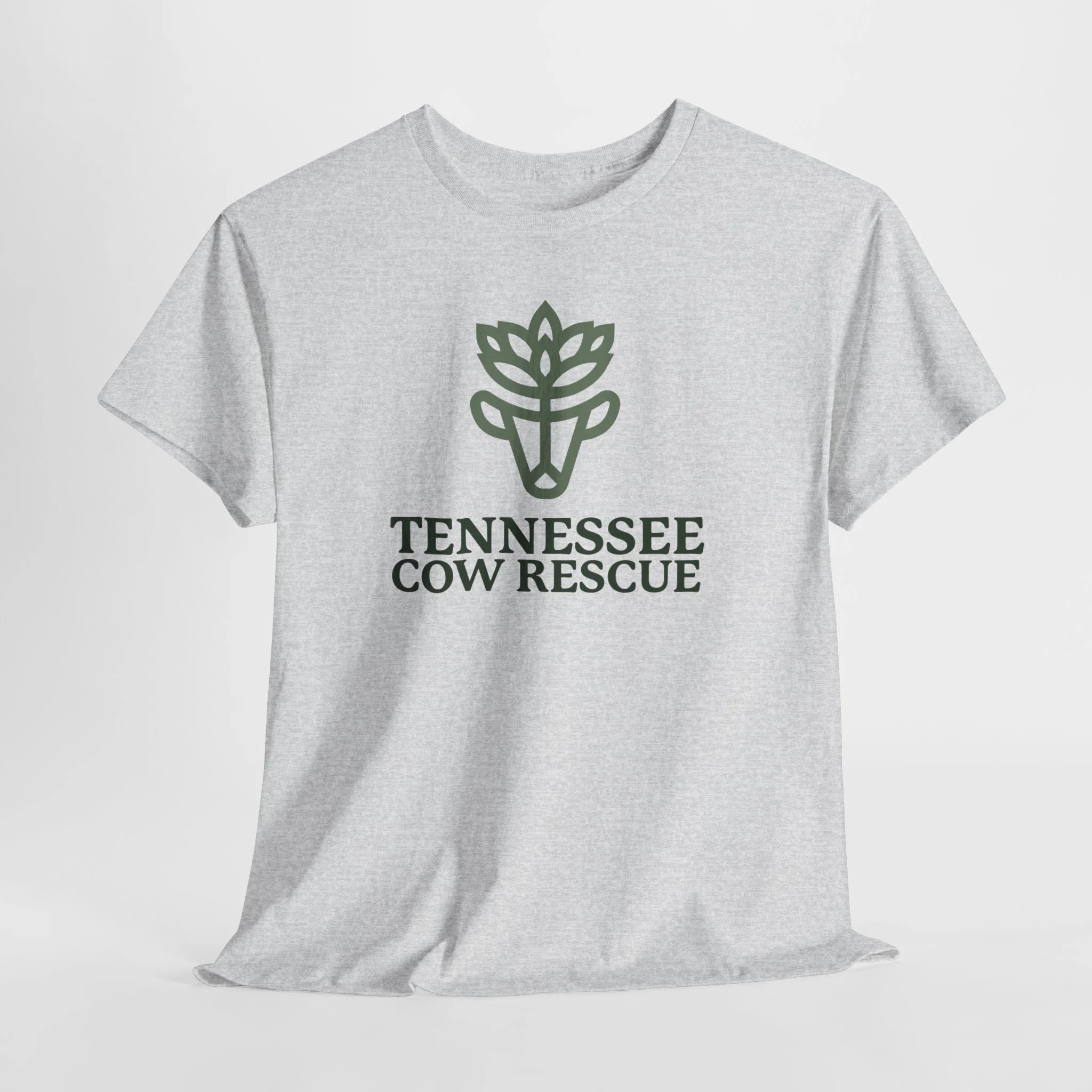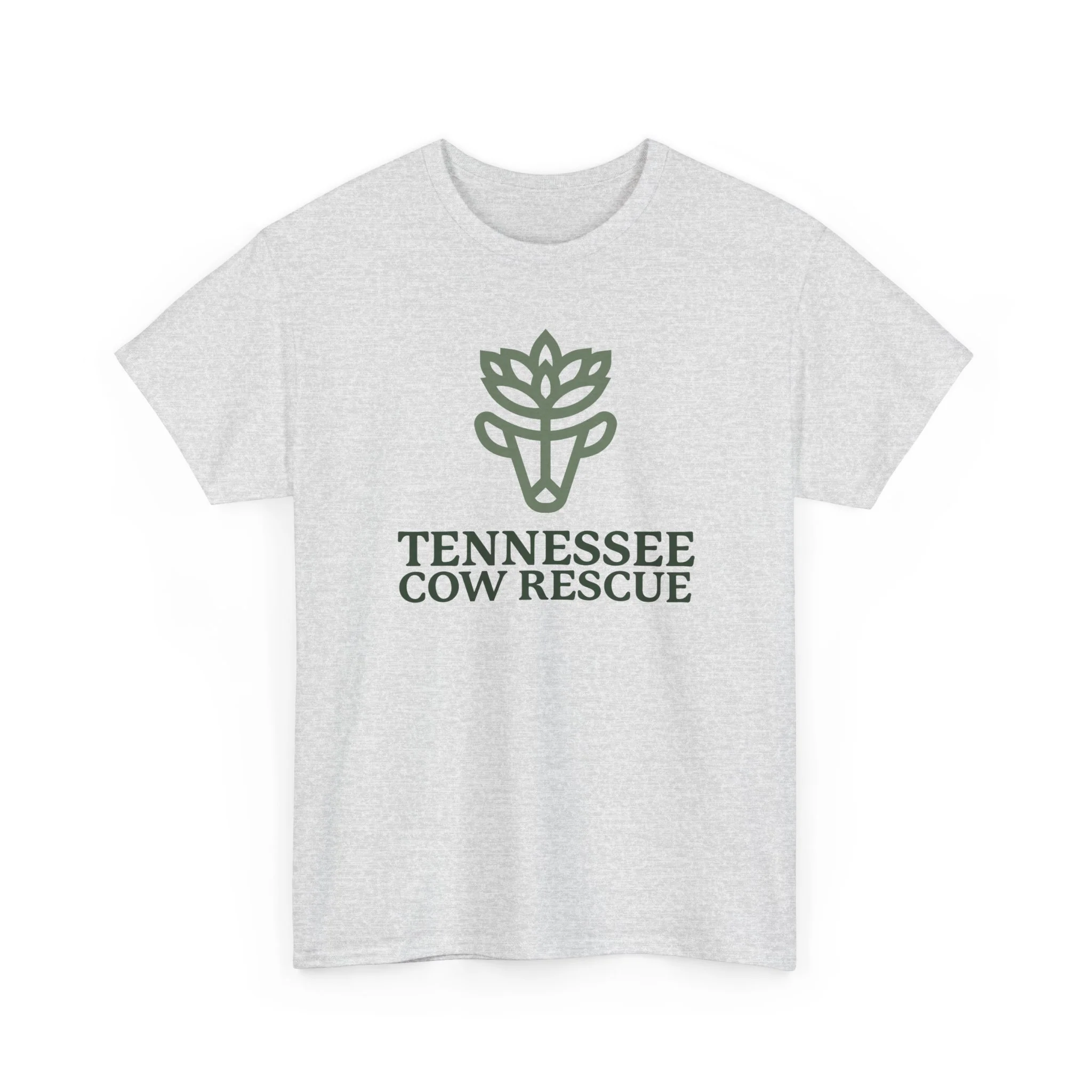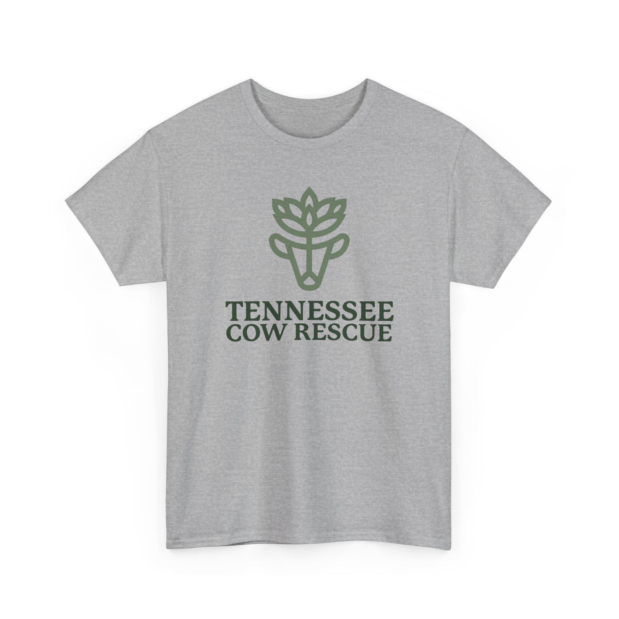 This soft, breathable tee carries our green logo above the words “TENNESSEE COW RESCUE”.