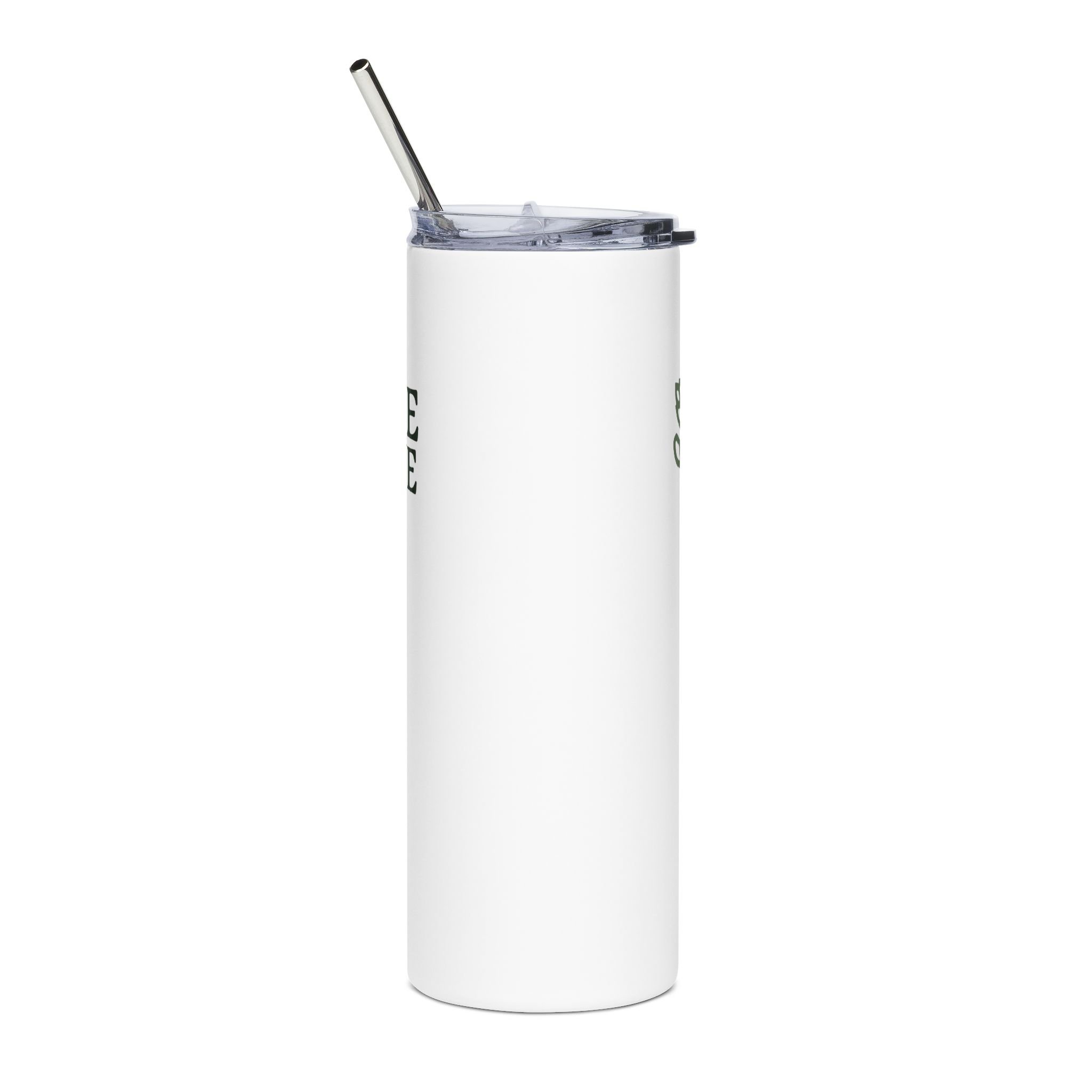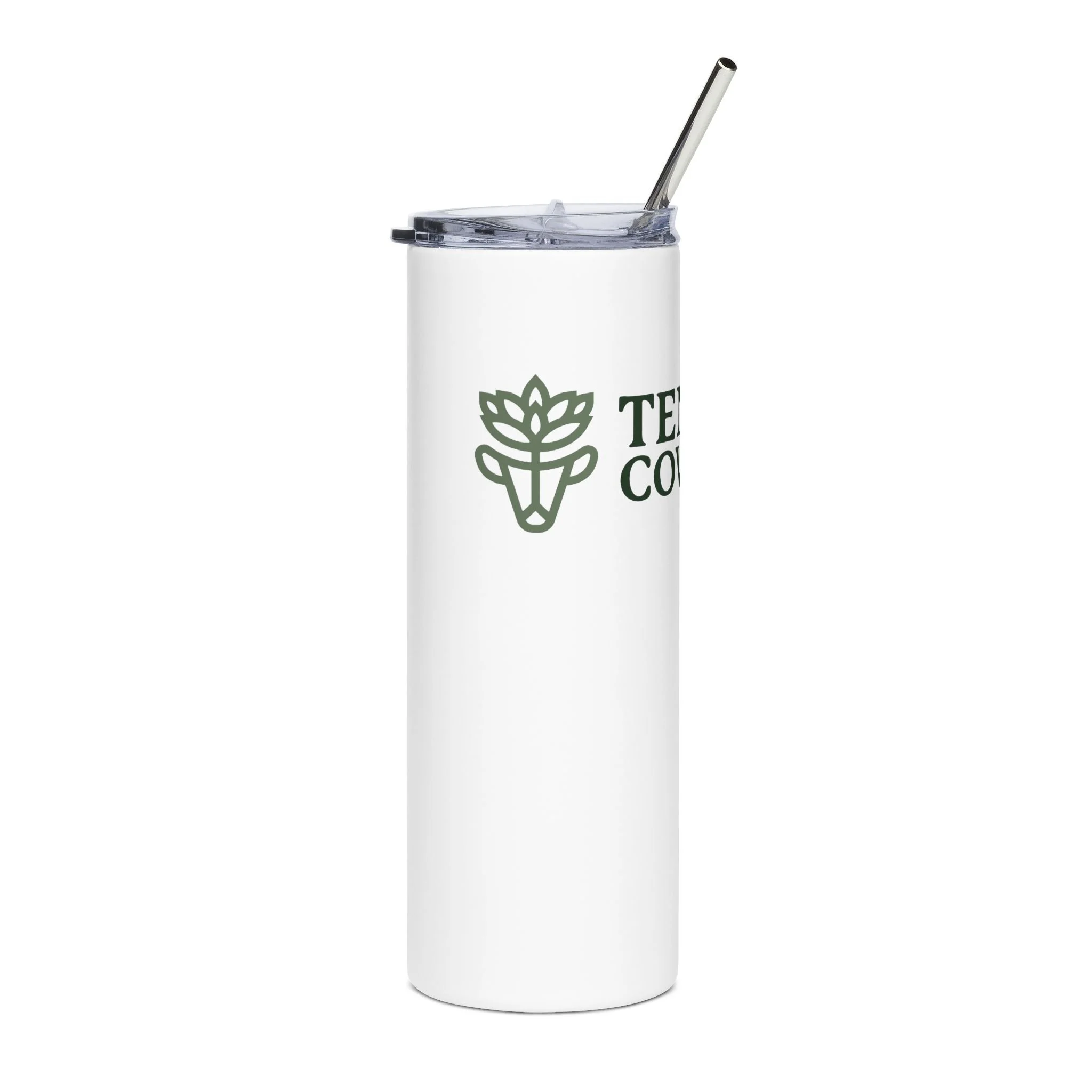 A slim, stainless steel 20 oz tumbler designed for slow-sipping days and long drives. Its tall, cylindrical silhouette slips into cup holders and bags, while the glossy protective finish keeps the white surface crisp and bright. A clear lid and reusable straw make it easy to sip on the go, and the full 360° printable area lets a subtle, nature-inspired logo wrap around the cup for a calm, understated look.